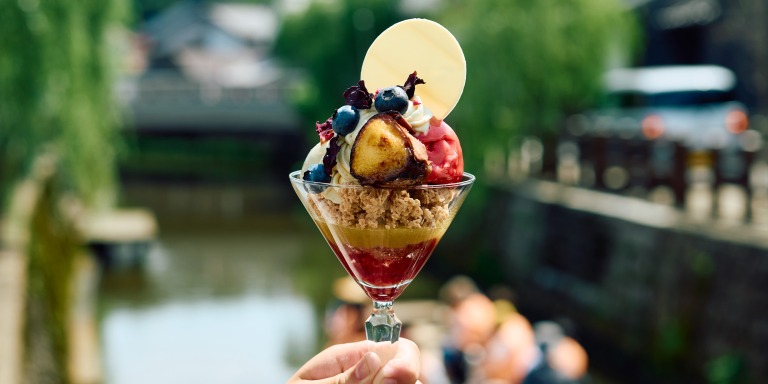 佐原は寿司や天ぷらなどの川魚料理や地元産コシヒカリを使った料理、佐原醤油を活かしたグルメ、ご当地スイーツなど、地元ならではの味が魅力。舟巡りで川から町並みを眺めながらグルメを楽しむのもおすすめです。
