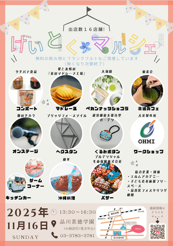 東京・品川の児童養護施設「品川景徳学園」で、子どもたちが店頭に立ち販売や接客に挑戦する「けいとくマルシェ」が11月16日(日)に開催されます。