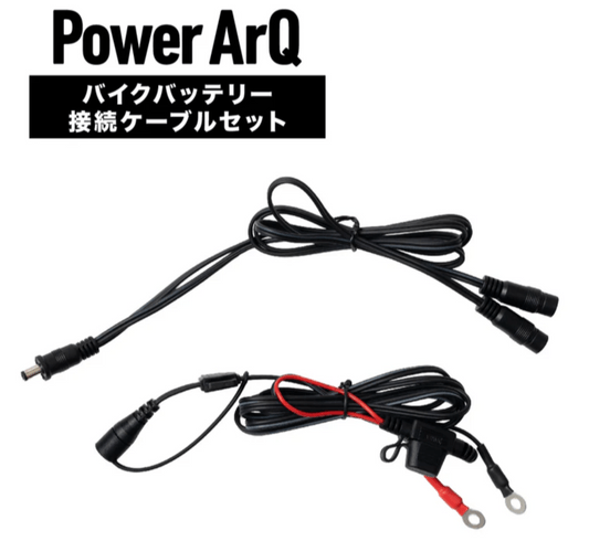 バイクバッテリーと、VolteraJacket、VolteraPantsを接続することができるY字型のケーブル。