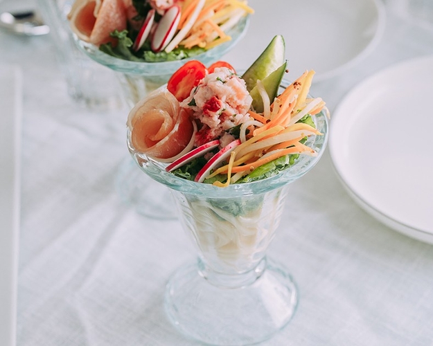 【NEW】7 種野菜と生ハムのパスタサラダパフェ~あごだしドレッシング~