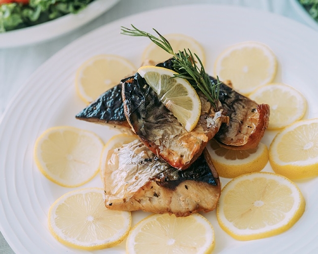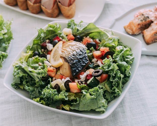 オメガ 3(n-3)脂肪酸が豊富なサバのハーブマリネを主役に、ビーツ、トマト、オリーブ、カッテージチーズを合わせた爽やかな色合いの一品です。レモンの酸味とハーブの香りが広がる自家製シトラスビネガードレッシングでさっぱりとした仕上がりとなっており、地中海風の味わいを楽しめます。