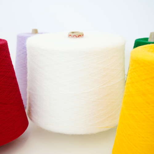 体験では、全36色の綿糸から2本を選び、モヘアウール1本とシルク1本を合わせて、自分だけのオリジナルソックスを編むことができます。
