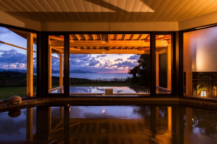 京丹後の海を望む木造三階建ての純和風建築。老舗のような趣を宿しながらも、肩肘張らずにくつろげる空間。