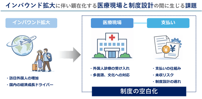 本質的な課題は、インバウンド医療を前提とした支払いの仕組みが、日本の医療制度の中で十分に設計されてこなかった点にあります。