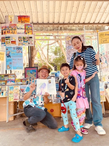 他、タイのデパートや病院、レストランなど、様々な企業・団体とコラボしながら、絵本や絵、デザインの製作を行っている。