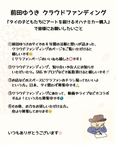 ④ そして最後に、差し支えのない範囲で、本企画へのご支援を賜れましたら幸いです。