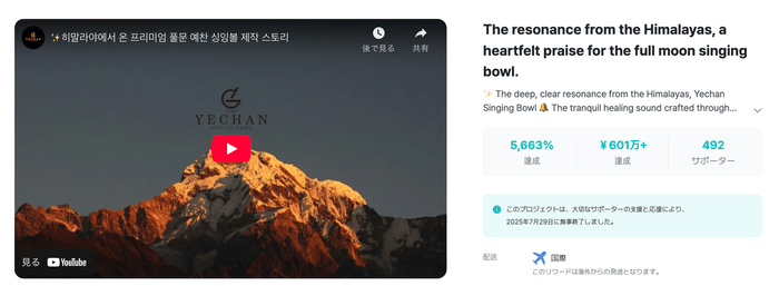 Makuake公開4日で603万円超を達成、「今日のランキング」総合1位。ネパール職人が60日かけて鍛え上げる「音浴シンギングボウル」に171名が支援