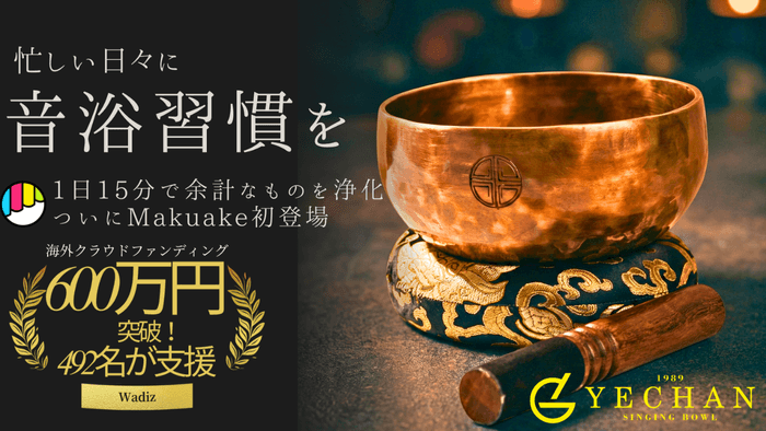 Makuakeで2月22日に公開された『YECHAN 音浴シンギングボウル』は、開始わずか1日で目標金額の43倍超となる435万円以上の応援購入を達成。