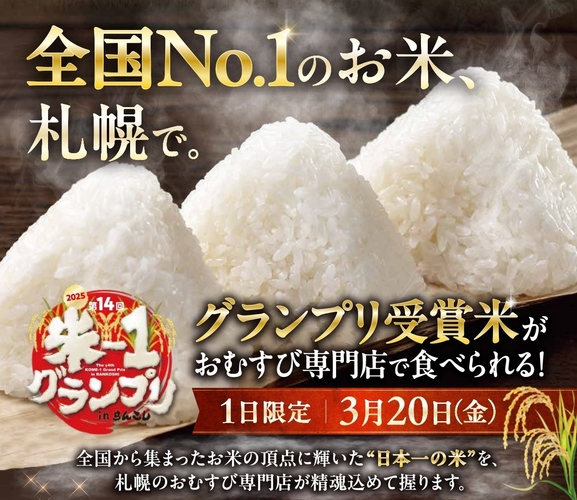米ー1グランプリinらんこし実行委員会事務局(蘭越町役場農林水産課らんこし米振興係)は、2026年3月20日(金・祝)、札幌市内の人気おむすび専門店3店舗(鮭まぶしおむすび亀太郎、ヤマショウのごはん、米屋札兵衛)にて、第14回大会でグランプリを受賞した岐阜県飛騨市・みつわ農園(永田政和氏)の「ゆうだい21」を味わえる特別提供イベントを実施いたします。