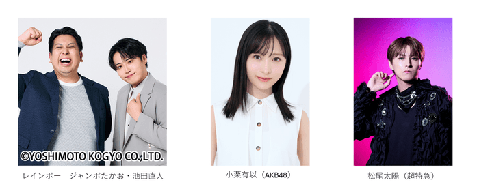 ▷出演者:レインボー ジャンボたかお・池田直人/小栗有以(AKB48)/松尾太陽 (超特急)