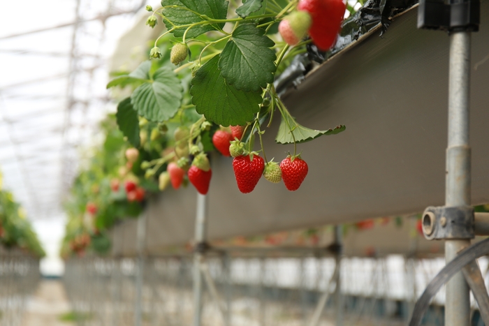 富士の麓でいちごを栽培する伊豆HOLLY'Sの「紅ほっぺ」。
