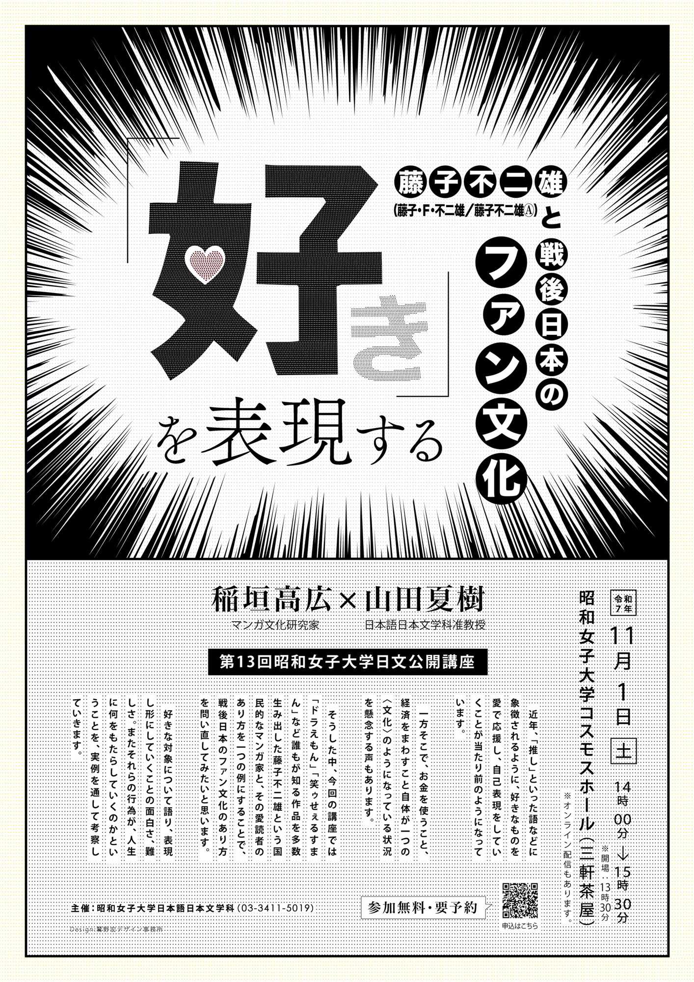 藤子不二雄と愛読者のあり方を例に、戦後日本のファン文化を問い直す【昭和女子大学】日本語日本文学科 第13回公開講座11/1開催