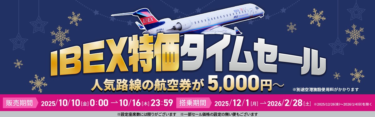 【仙台-札幌 5,000円~】IBEX特価タイムセールのお知らせ
