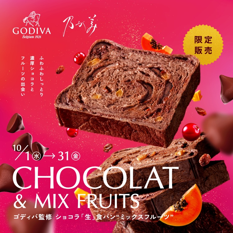 大人のためのご褒美、『ゴディバ監修ショコラ「生」食パン“ミックスフルーツ”』『ゴディバ監修チョコレートクリーム』10月1日(水)新発売!