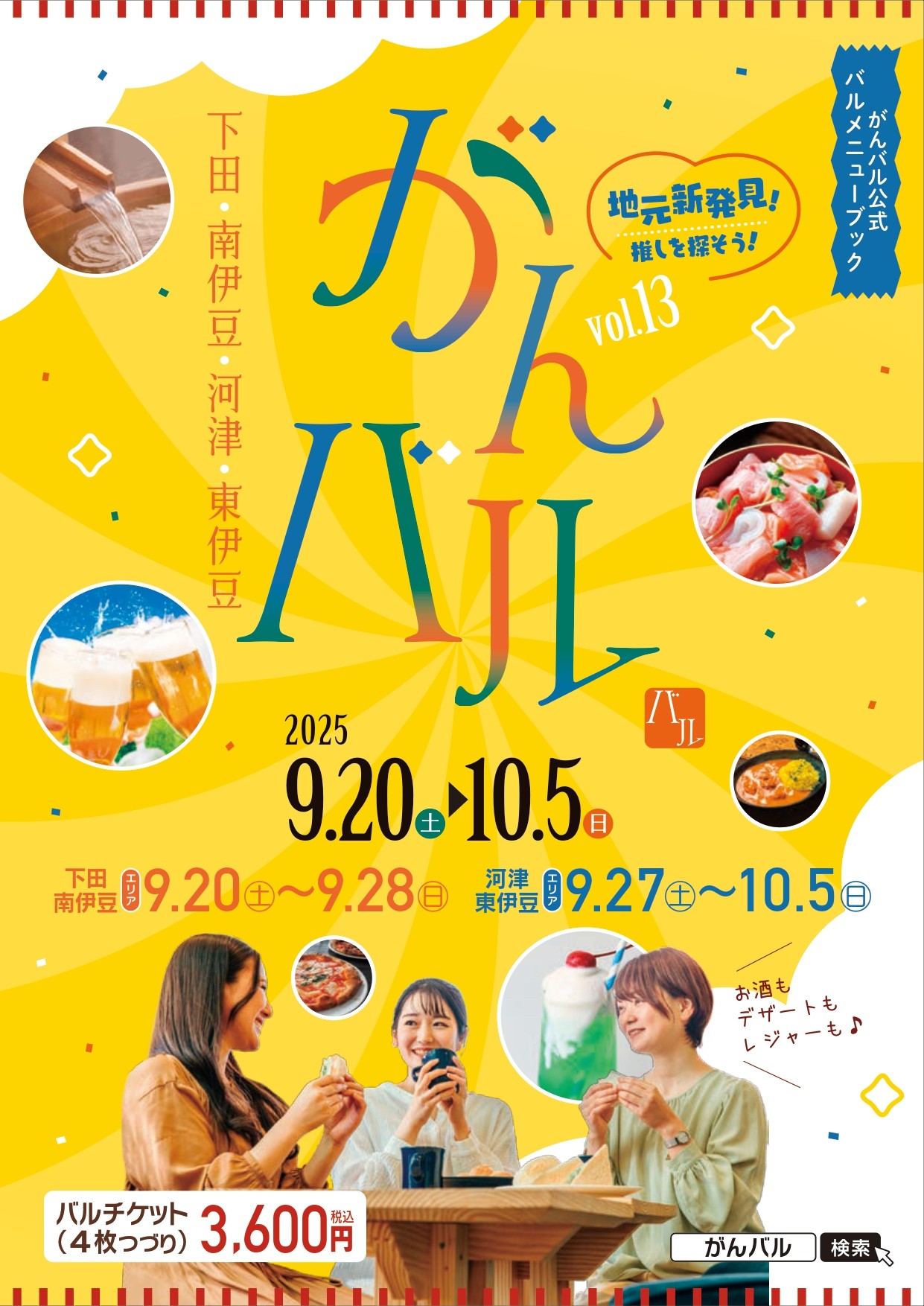 伊豆半島南部をお得に楽しむ『 がんバル』令和7年9月20日(土)~10月5日(日)開催!