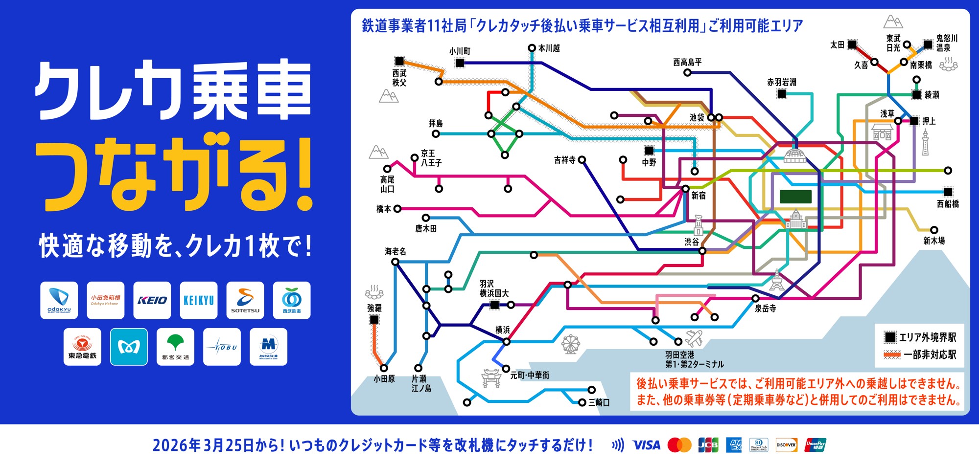 クレジットカード等のタッチ決済による後払い乗車サービスの相互利用を開始します【鉄道事業者11社局他】
