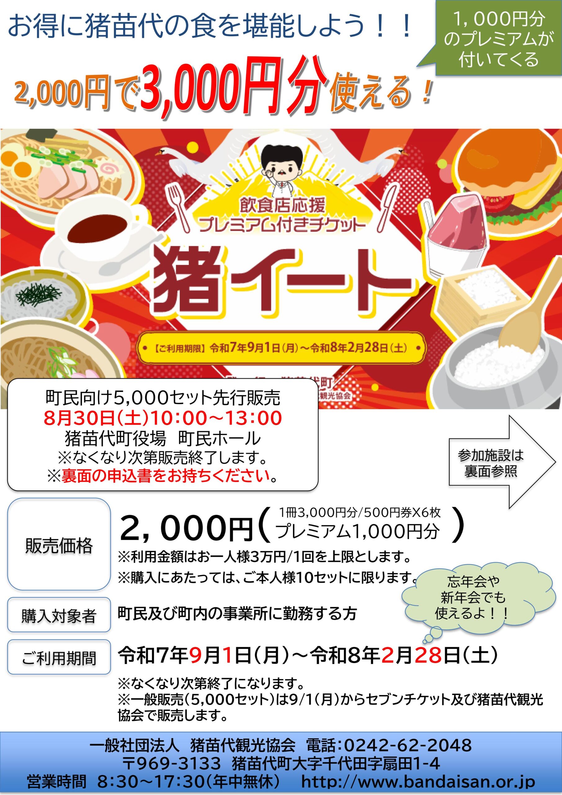 福島県猪苗代町で1,000円分お得に食事が楽しめる!プレミアム付き食事券「猪イート」の一般販売を9月1日より開始