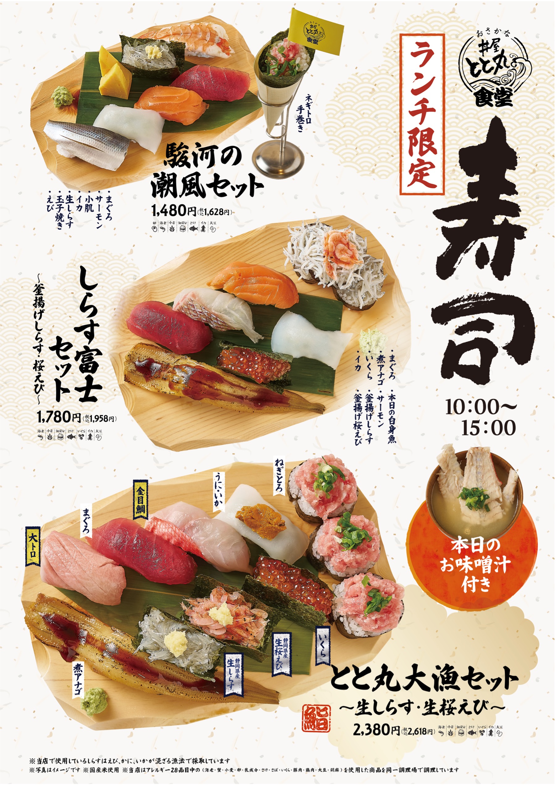新東名高速道路 上り線 NEOPASA駿河湾沼津【おさかな丼屋 とと丸食堂】ランチ限定の握り寿司3商品とおっきい軍艦寿司を12月19日(金)より販売開始!