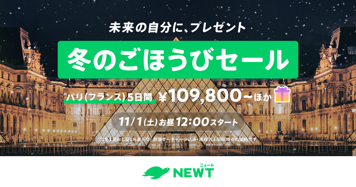 旅行アプリ『NEWT(ニュート)』、ヨーロッパ旅行が¥109,800~ おトクな冬のごほうびセールを開催決定!