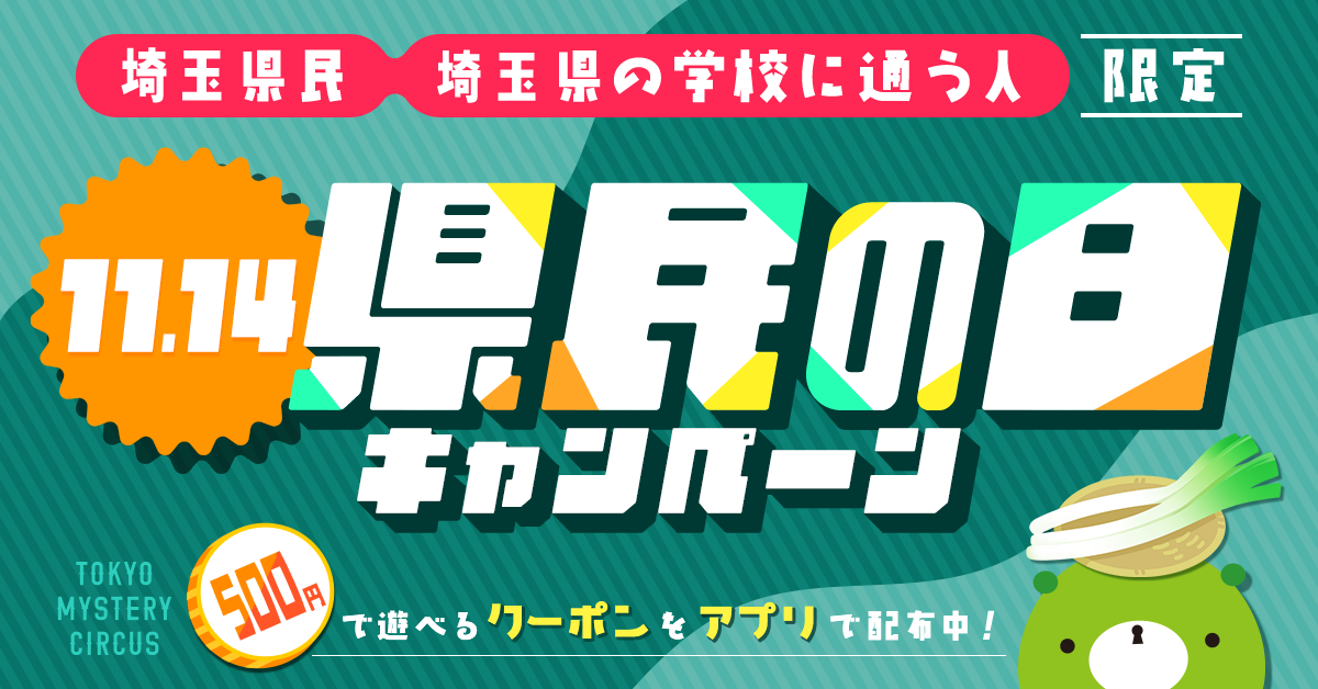 埼玉県民限定!リアル脱出ゲームがワンコインで遊べる!11月14日「埼玉県民の日キャンペーン」 東京ミステリーサーカスで実施