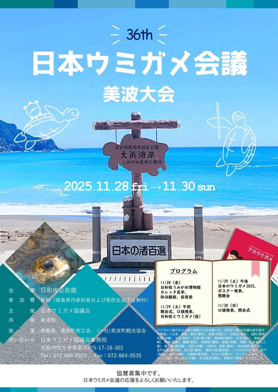 第36回日本ウミガメ会議美波大会を開催【31年ぶりに徳島県美波町で開催!:令和7年(2025年)11月28日~30日】
