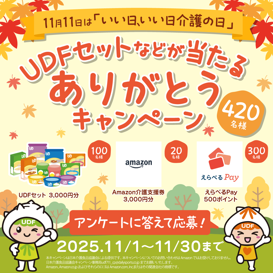 《11/11は「介護の日」》“家族で介護を考えるきっかけに”ユニバーサルデザインフードなどが当たるプレゼントキャンペーンを開催