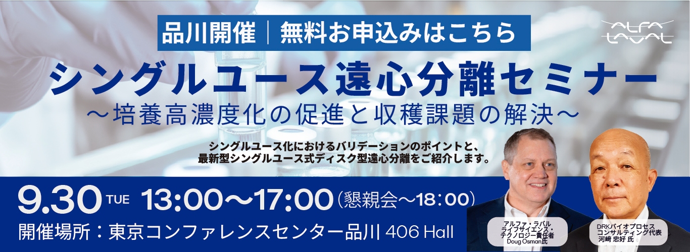 バイオ医薬製造におけるバリデーションに焦点を当てた「シングルユース遠心分離セミナー」を9月30日に開催!~最新分離技術によるプロセス最適化~