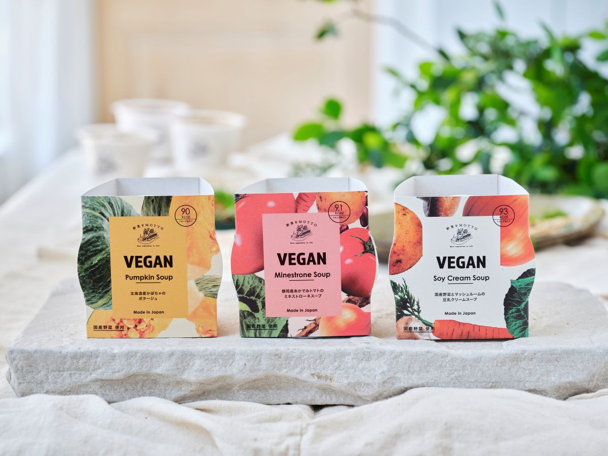 <ベジMOTTOシリーズからヴィーガンスープが登場!>かぼちゃスープ・ミネストローネ・豆乳クリームスープ 国産野菜の恵みをそのままに、ベジMOTTOスープからヴィーガンスープ3種類が新発売