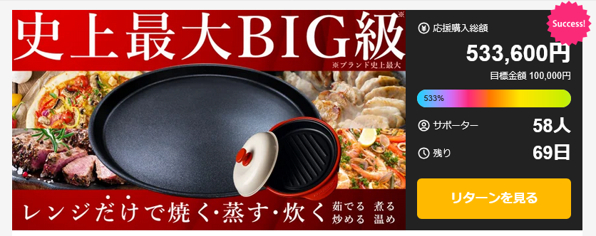 支援金額8,291,760円を達成した、電子レンジで本格焼き料理ができる「レンジマジック」。さらに進化し多様な調理を短時間で可能にした、待望の「第二弾」新発売。