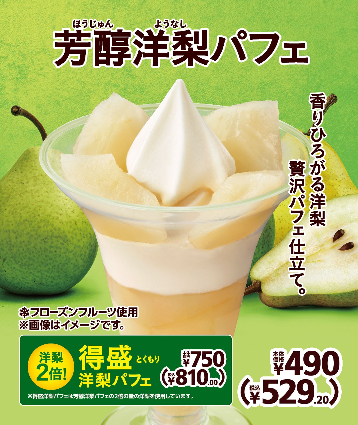香りひろがる洋梨 贅沢パフェ仕立て 「芳醇洋梨パフェ/得盛洋梨パフェ」 10月24日(金)~発売中