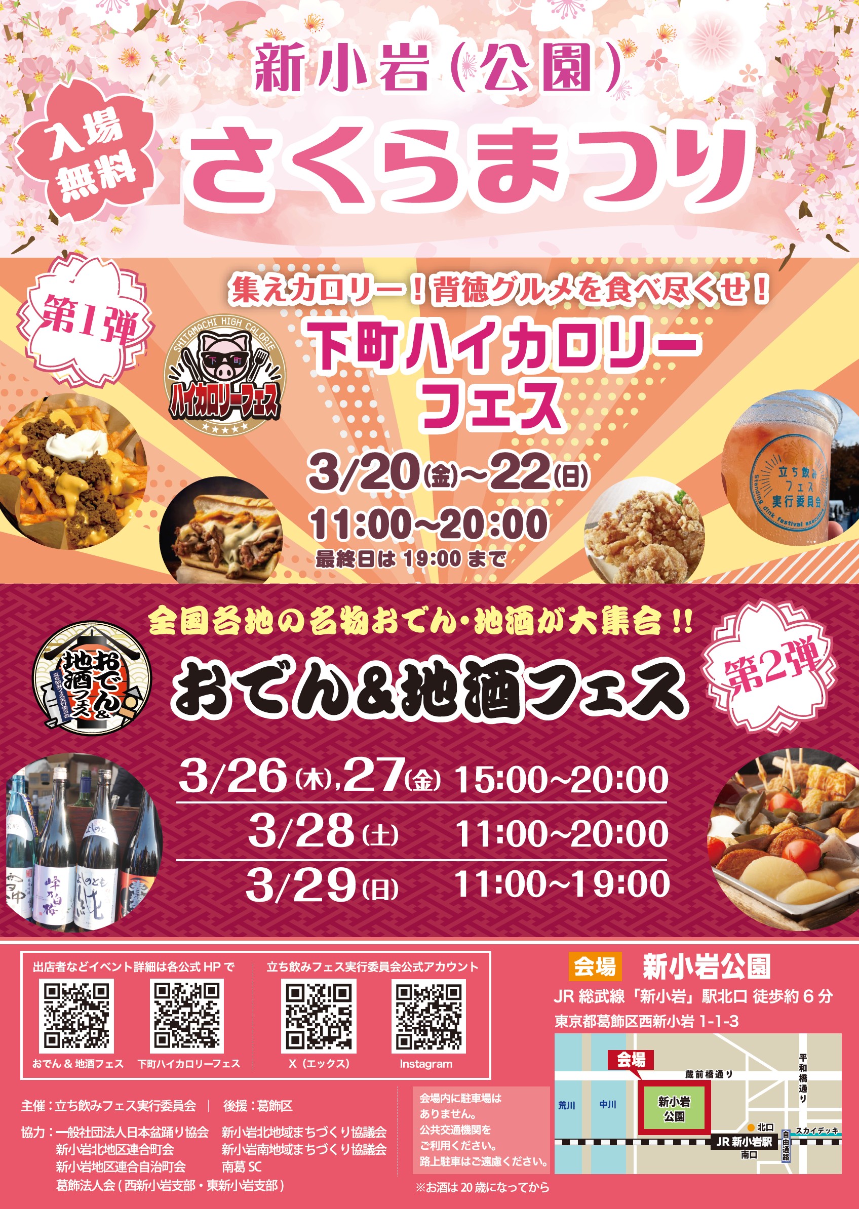 「下町ハイカロリーフェス2026 in 新小岩公園」3/20(金・祝)~22(日)「おでん&地酒フェス in 新小岩公園」3/26(木)~29(日)新小岩(公園)さくらまつりで連続開催!
