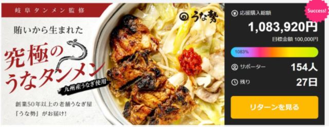 うなぎの新たな可能性「究極のうなタンメン」をMakuakeで先行販売 一週間で100万円突破