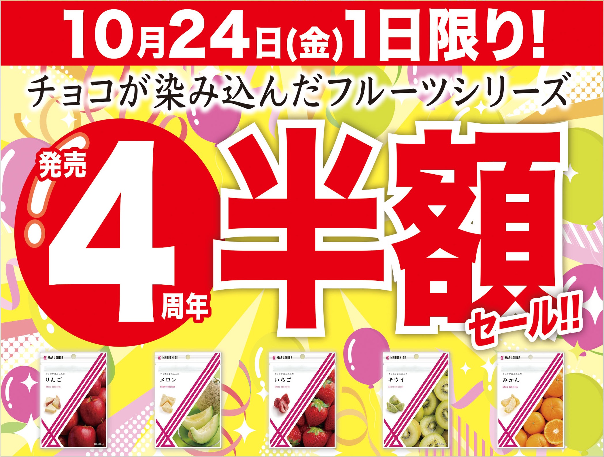 1店舗で1日1,000個以上売れた「チョコが染み込んだフルーツシリーズ」4周年祭を開催 今年も半額価格にて10月24日に数量限定販売!