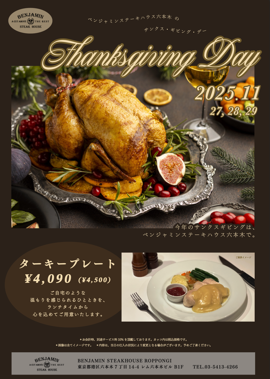 ベンジャミンステーキハウス六本木店 2025年感謝祭(サンクスギビング)期間限定メニュー&秋の新作コースのご案内