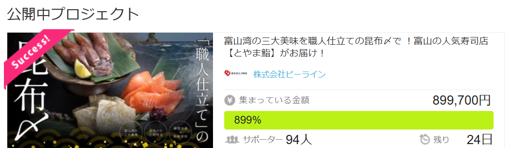 富山の人気寿司店「とやま鮨」初の通販事業を立ち上げ Makuakeプロジェクト開始1日で目標金額700%達成!