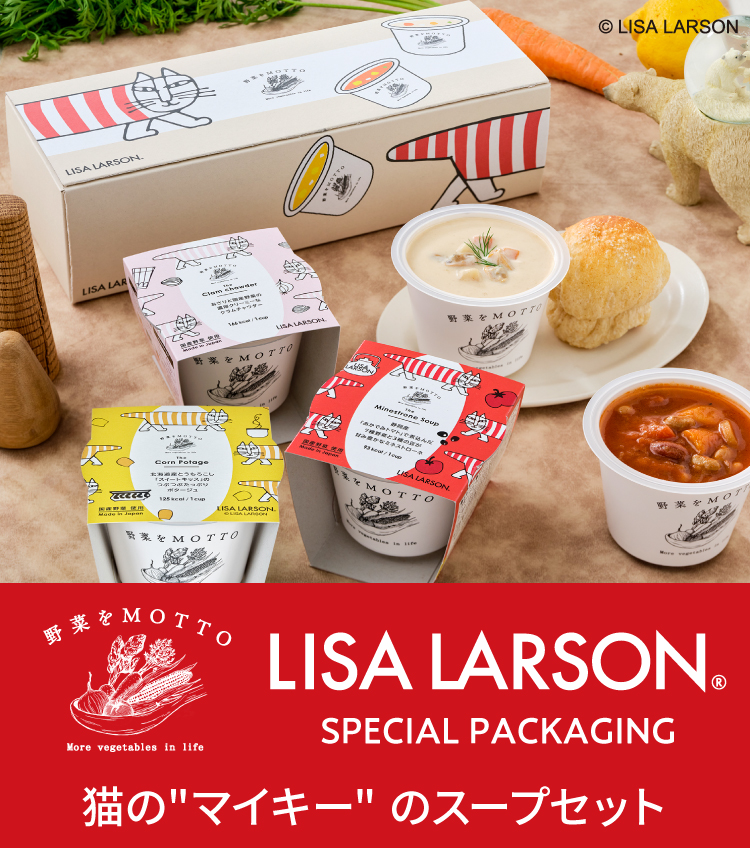 野菜をMOTTOからスウェーデンの陶芸家 リサ・ラーソンの代表作 「マイキー」デザインのスープセットが新発売