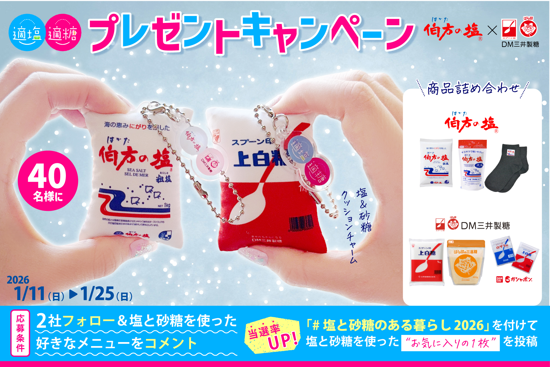 伯方の塩×スプーン印・ばら印のお砂糖がコラボ! まるで本物!?クッションチャームが当たるキャンペーンを1月11日(日)~1月25日(日)開催!