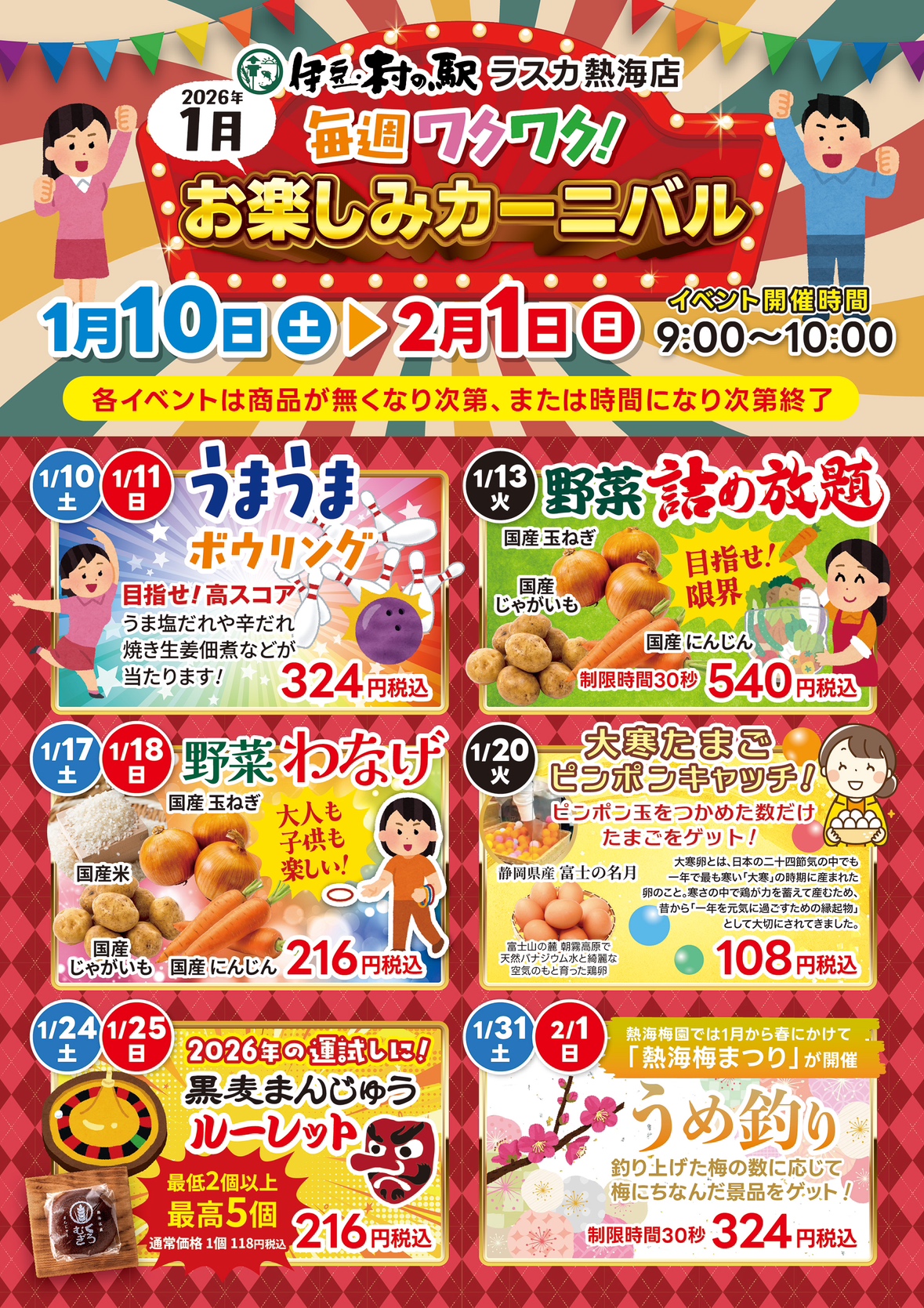 <熱海>1月は伊豆・村の駅 ラスカ熱海へ!毎週行きたくなるワクワクイベントを1/10より開催