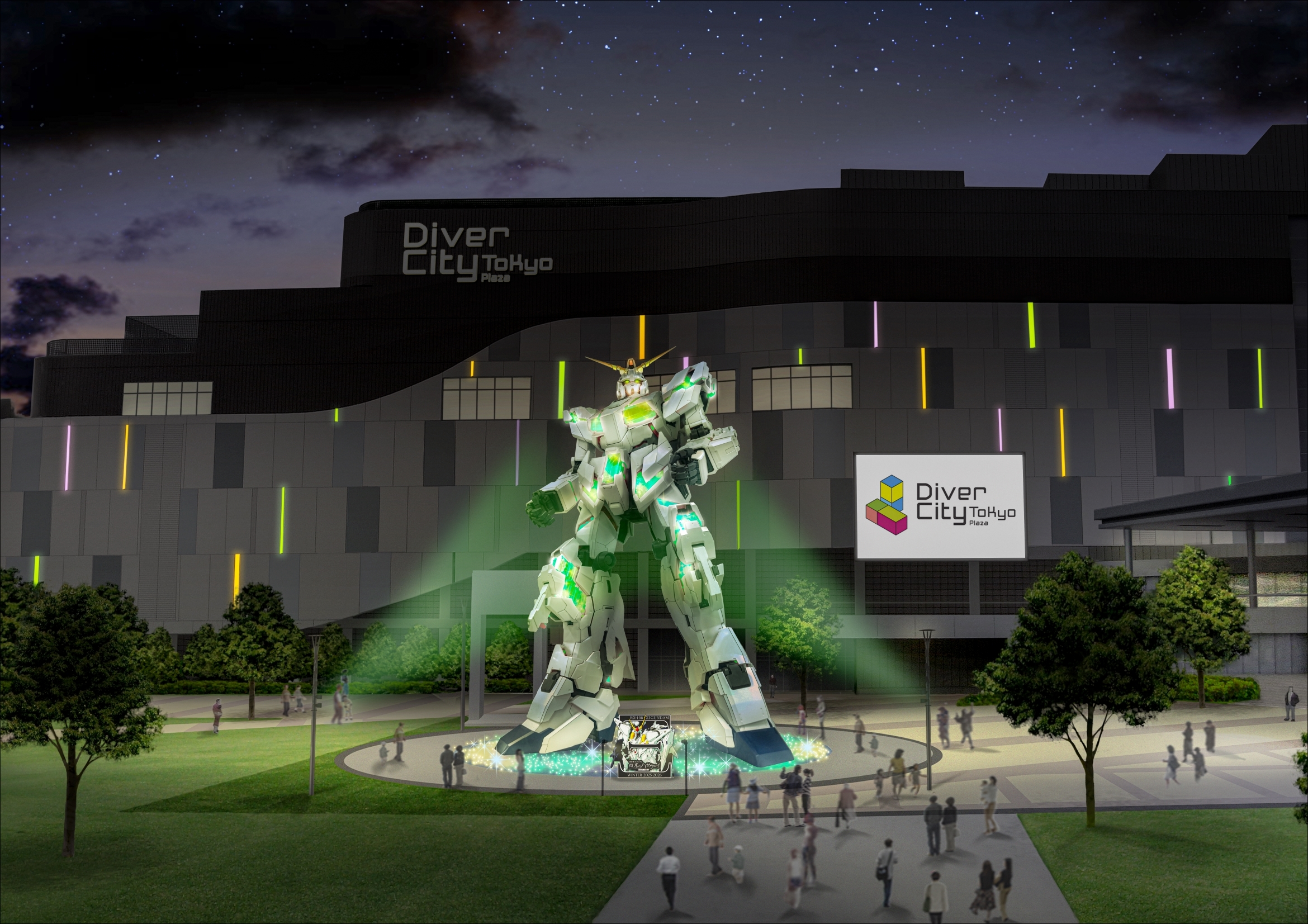 今年は3月まで期間延長!日没後の観光スポットに 2026年1月30日(金)全国劇場公開『機動戦士ガンダム 閃光のハサウェイ キルケーの魔女』をテーマにデザイン 実物大ユニコーンガンダム立像冬季限定25-26Ver.ライトアップ実施 2025年11月23日(日)~2026年3月6日(金)