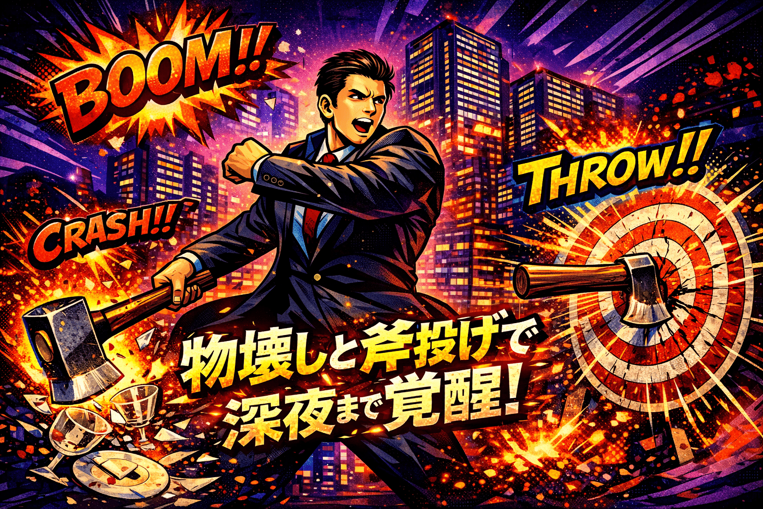 【終電後の新常識】物壊しと斧投げバーで西新宿・大阪心斎橋・名古屋錦で深夜営業開始!