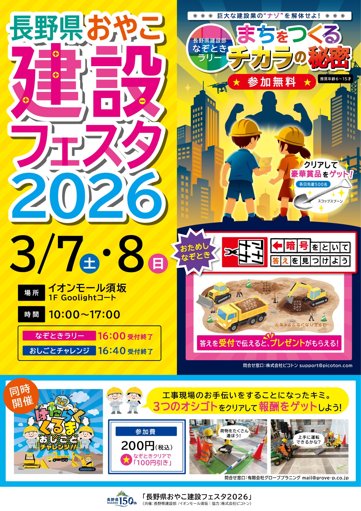 【参加無料&先着プレゼントあり!】長野県政150周年“建設なぞとき”体験型イベントをイオンモール須坂で開催