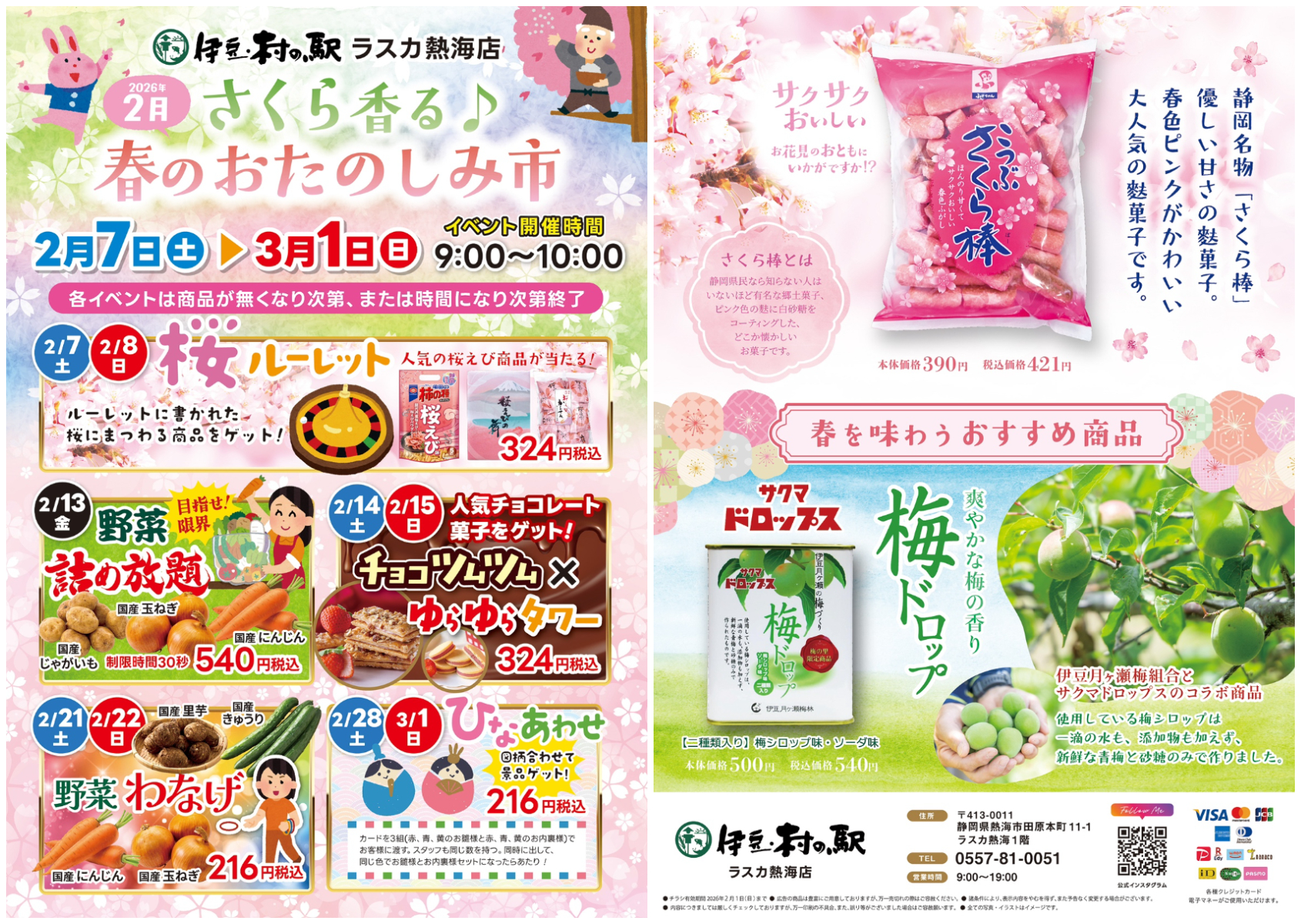 2月の伊豆・村の駅 ラスカ熱海へ!「さくら香る♪春のおたのしみ市」を開催