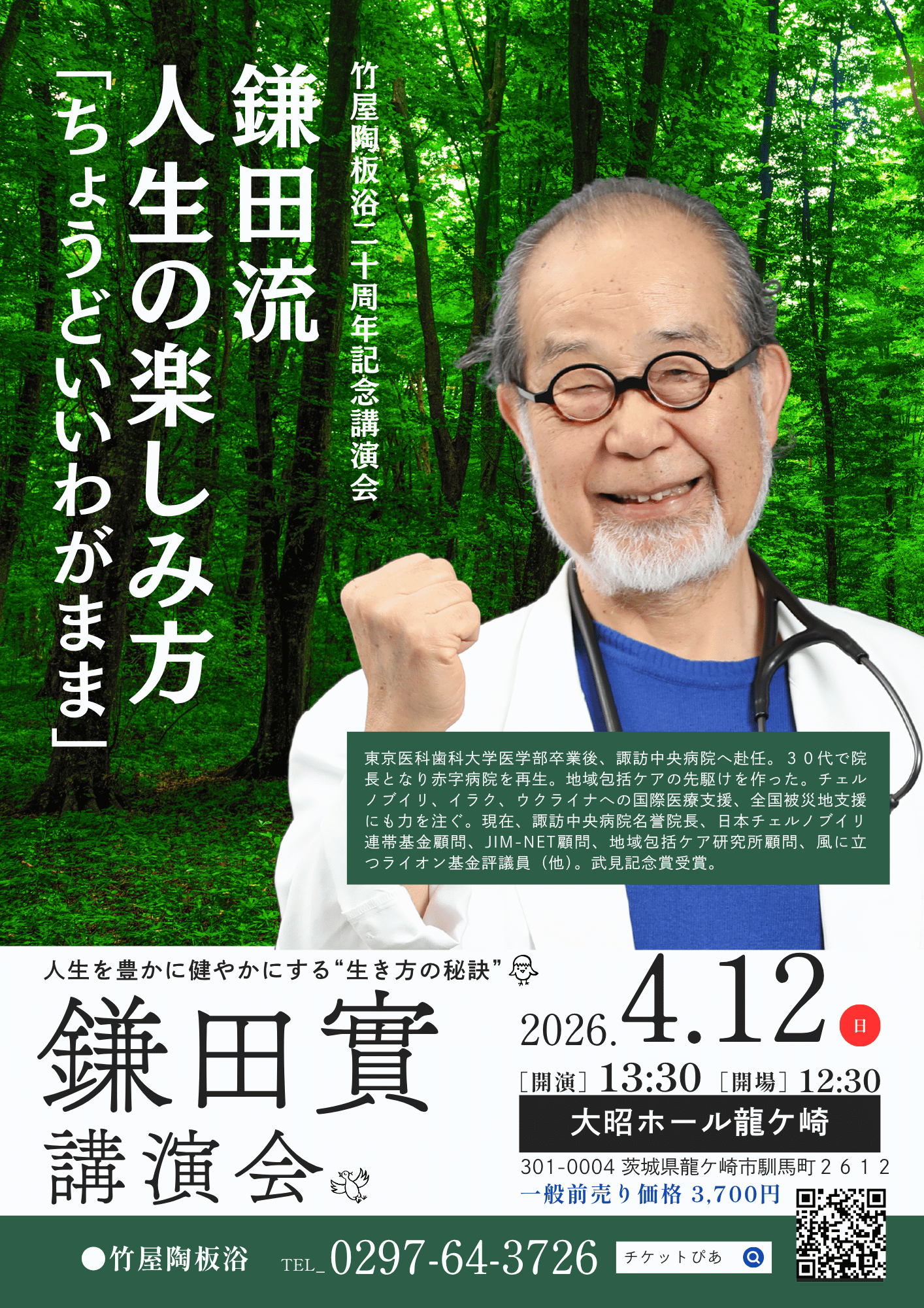 「鎌田 實先生を龍ケ崎へ!」有志の熱意で実現 “竹屋陶板浴 20周年記念講演”4/12(日)開催