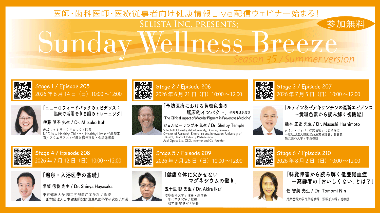Selista Inc. Presents.『Sunday Wellness Breeze』Season 35 Summer version 全6 Stage 2026年6月14日(日)~8月2日(日)の朝に開催