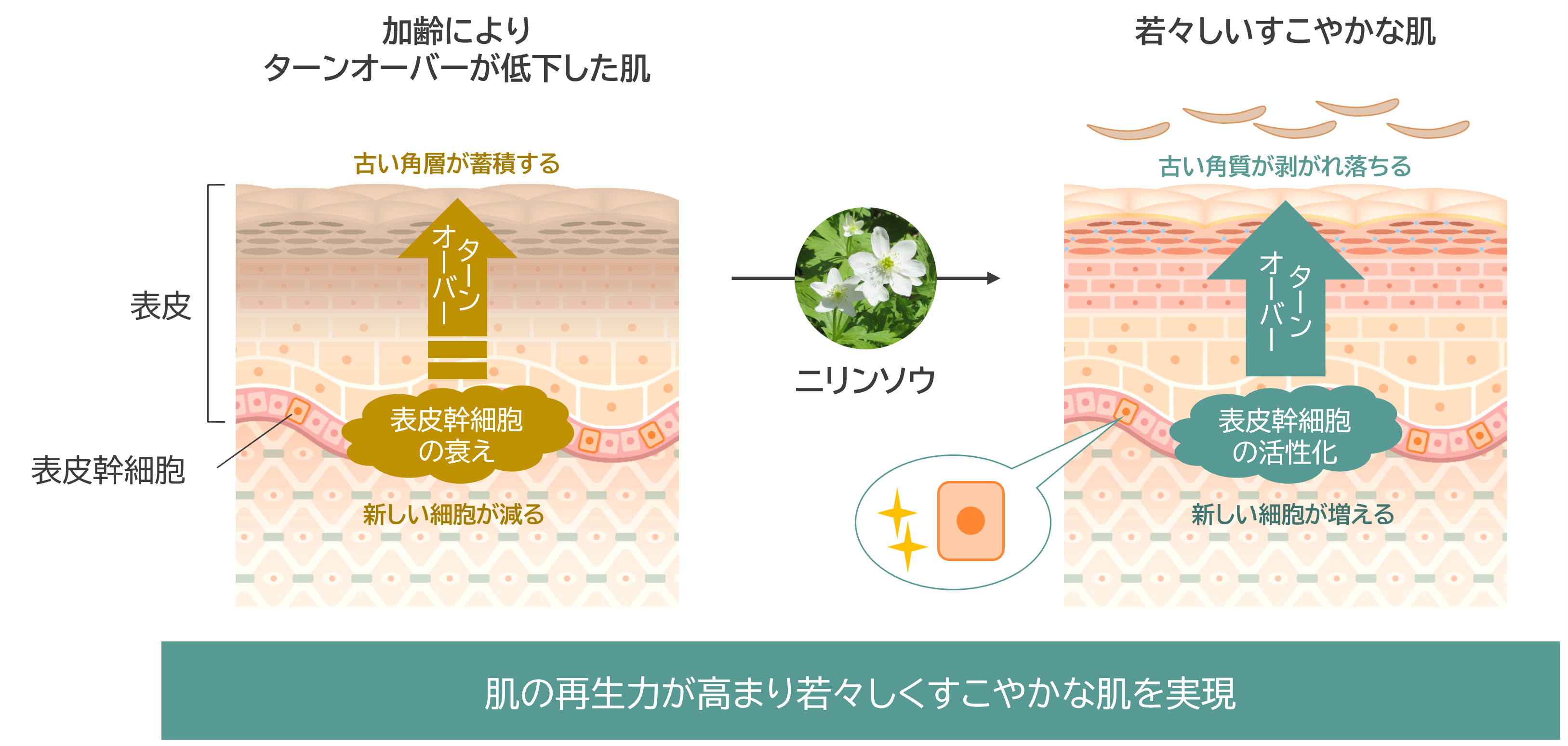 「ニリンソウ」が肌の再生力を高め若々しい状態に導くことを発見